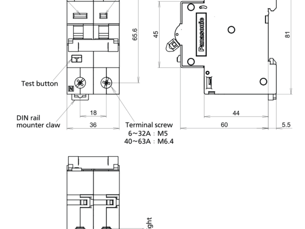 | Trọng lượng | 6A-32A – 0.2kg, 40A-63A-0.23kg |